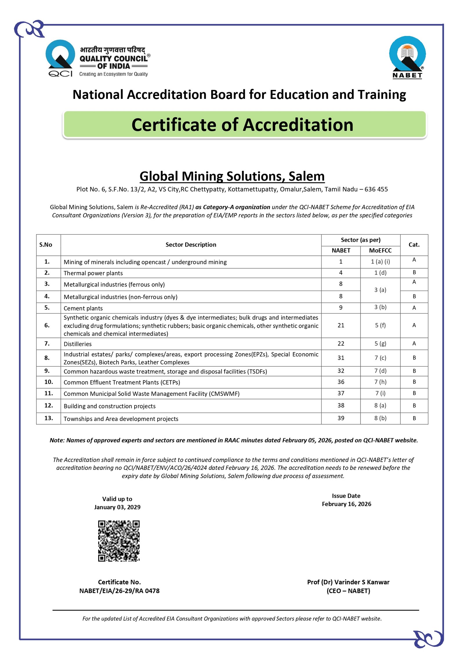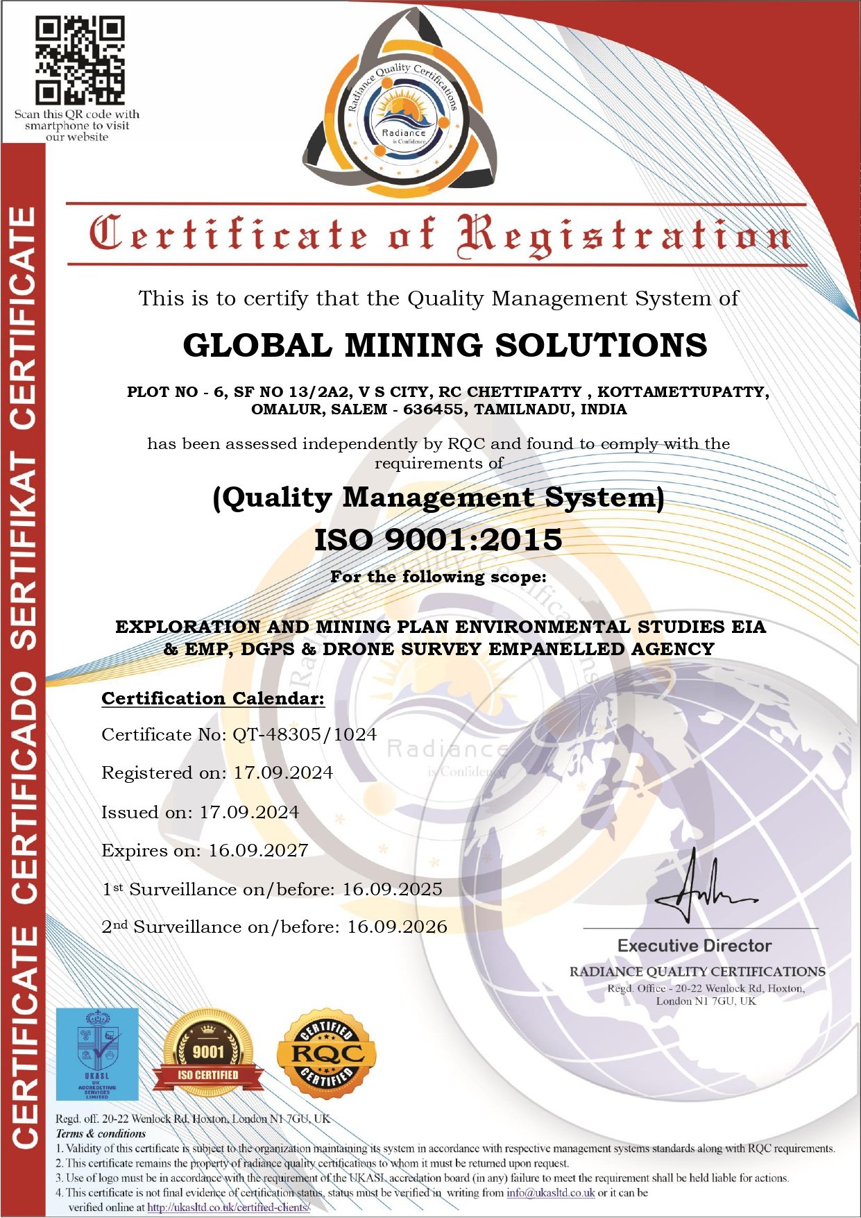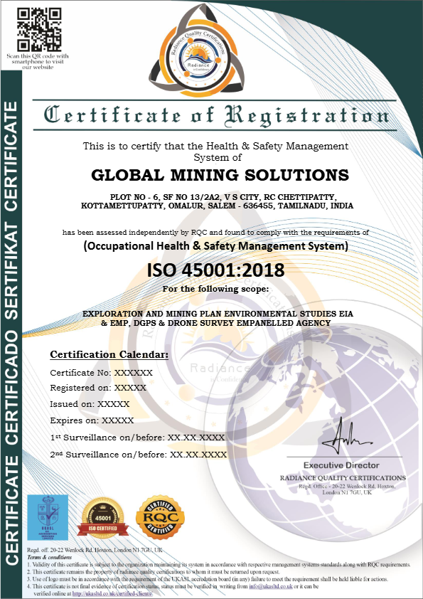 Global Mining Solutions offers consultancy services including mining plan preparation, Environmental Impact Assessment (EIA) reports, drone surveys, mine mapping, and regulatory approval documentation for mining projects across Tamil Nadu.